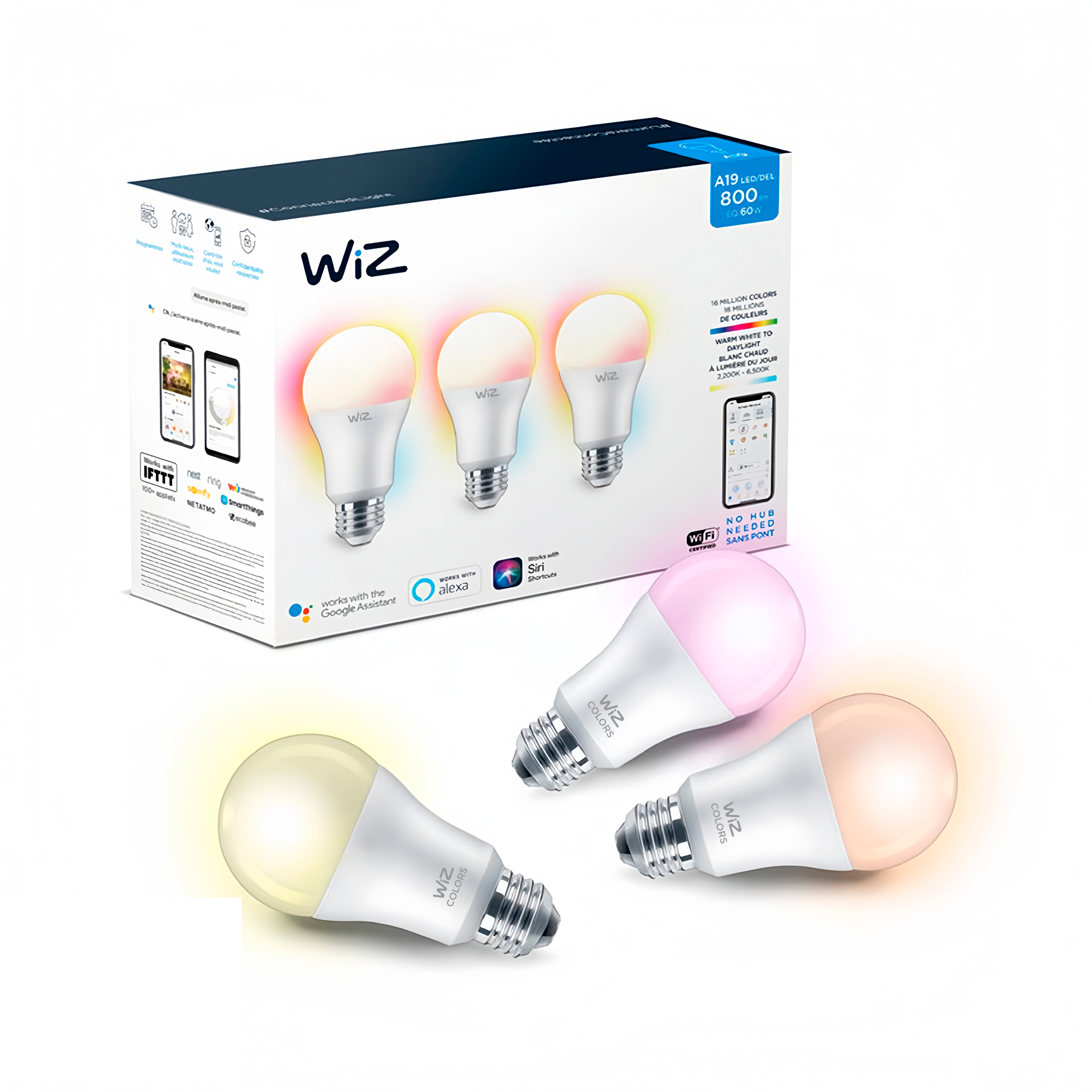 Anima tu hogar con estas bombillas inteligentes de WiZ. Ajusta fácilmente el brillo, cambia entre luz blanca fría y cálida, y elige fácilmente entre literalmente millones de colores para personalizar tu experiencia de iluminación. Además, puedes controlarlo con la aplicación WiZ o con la voz, por lo que no necesitas ningún hardware adicional.
